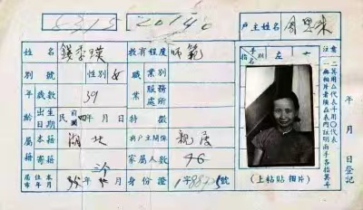 第十期:民国25年(1946)钱瑛在南京时的户口卡